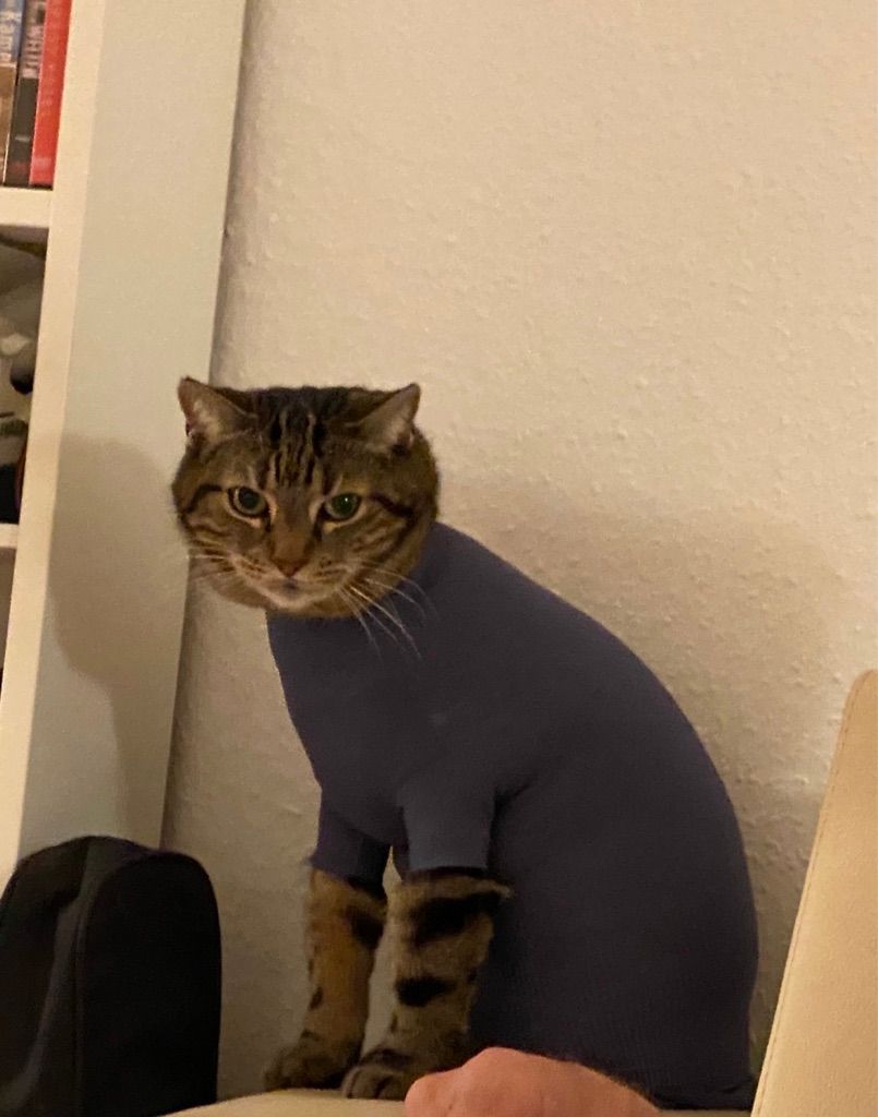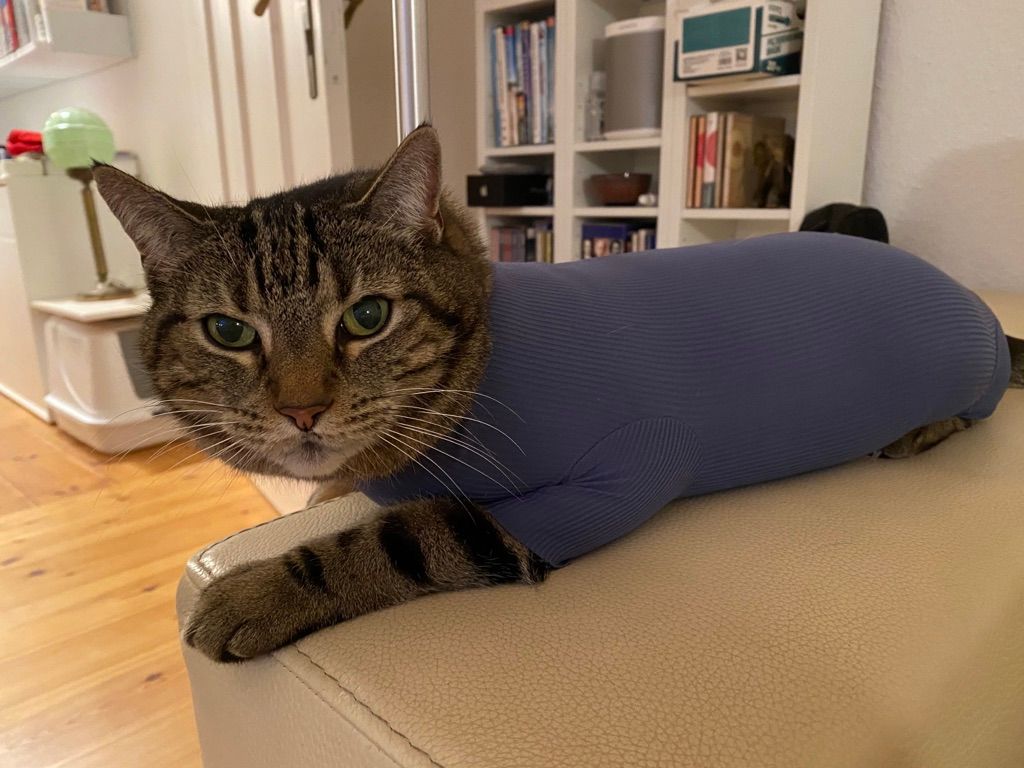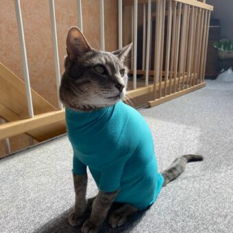 Katzenbody + Wundschutz speziell für Katzen entwickelt | VetMedCare® Cat Bodysuit. Feedbild.